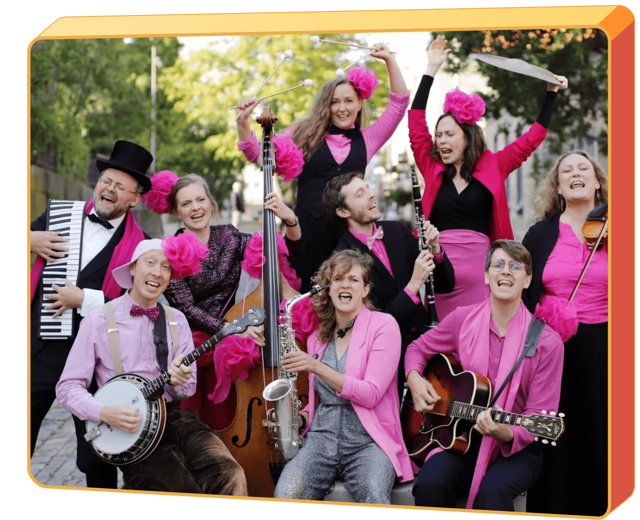 Cats and Dinosaurs is a left-wing feminist swing collective from Gothenburg, Sweden. Also known as the world’s most radical swingband! They mix the objectively best politics with the objectively best music. Result: dance party!!!! Their feet are planted in the radical backwaters of the jazz and blues, but they threw out all the standards in favour of their own leftie feminist songbook. Jazz was the punk of the twenties, and Cats and Dinosaurs want to honour the creativity and radicalism of the jazz pioneers by embracing their energy and attitude rather than copying them note for note. They are also swing dancers! This just might be the secret behind that irresistible dance groove that will get you singing along and stomping your feet in no time, all while subversive little messages slip into your subconscious like gleaming red silverfish.